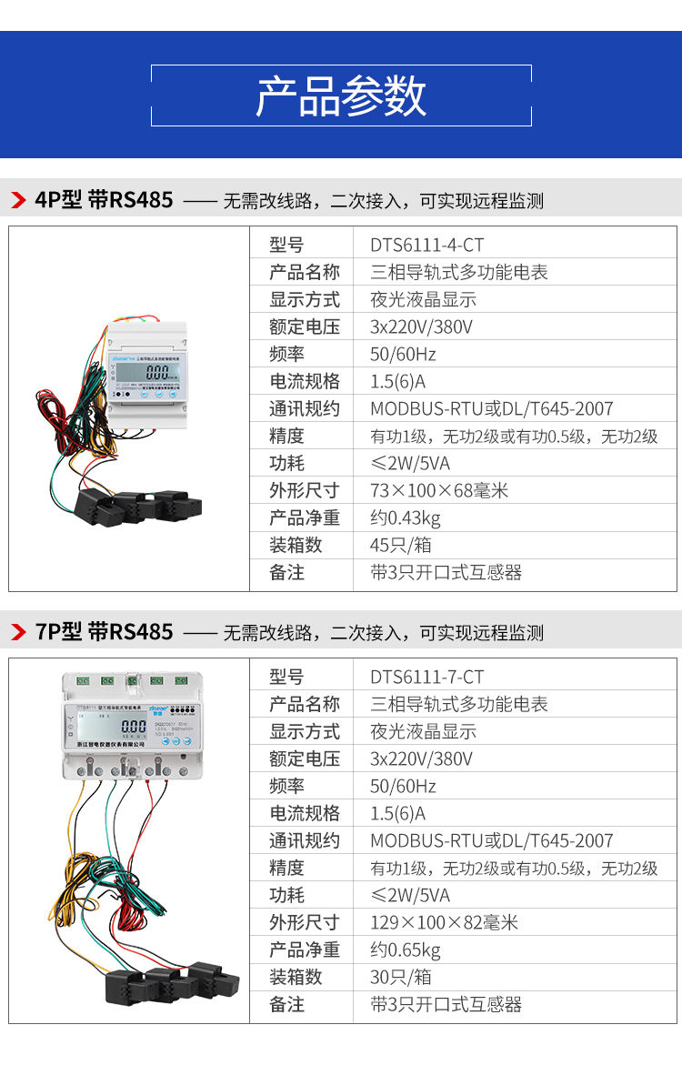 訂購產品: DTS6111-7三相導軌式二次互感遠程監測電表